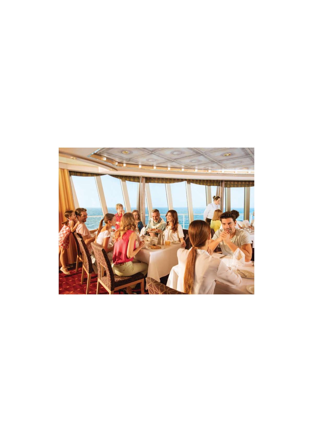 * Trattamento di PENSIONE COMPLETA a bordo: caffè mattutino, prima colazione, pranzo, cena, tè pomeridiani, buffet e sorprese gastronomiche di mezzanotte;