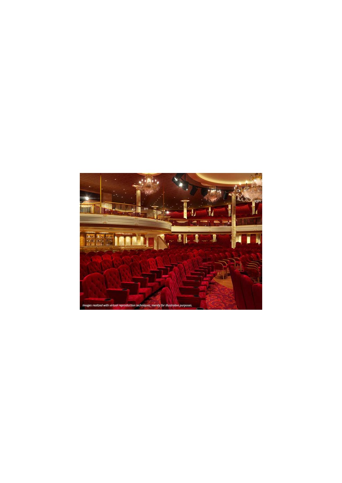 * Utilizzo gratuito di tutte le attrezzature della nave: piscine, lettini, palestra, vasche idromassaggio, discoteca, biblioteca, teatro;