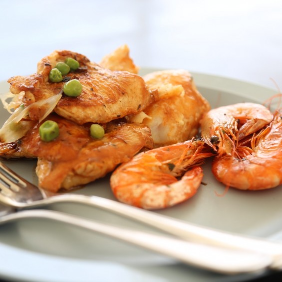 Calamari fritti e Scampi; * Contorno e insalata mista;