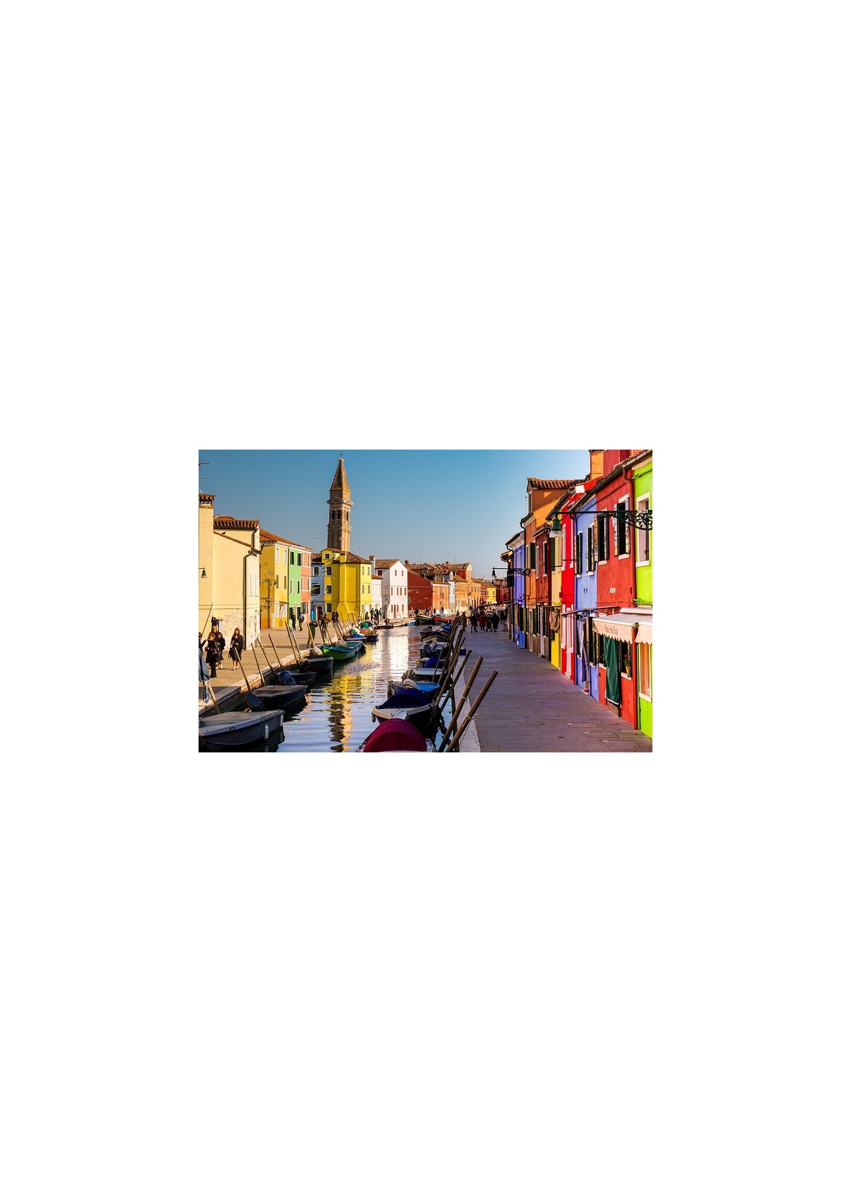 L'isola di Burano è famosa per le sue case colorate e le vie pittoresche e rinomata anche per la produzione di merletti tradizionali, un'arte antica tramandata nel tempo. L'atmosfera tranquilla e le caratteristiche architettoniche la rendono una meta molto amata anche per le sue splendide viste sul canale e sulla laguna veneziana.