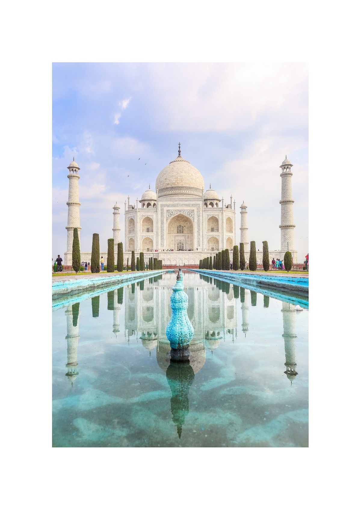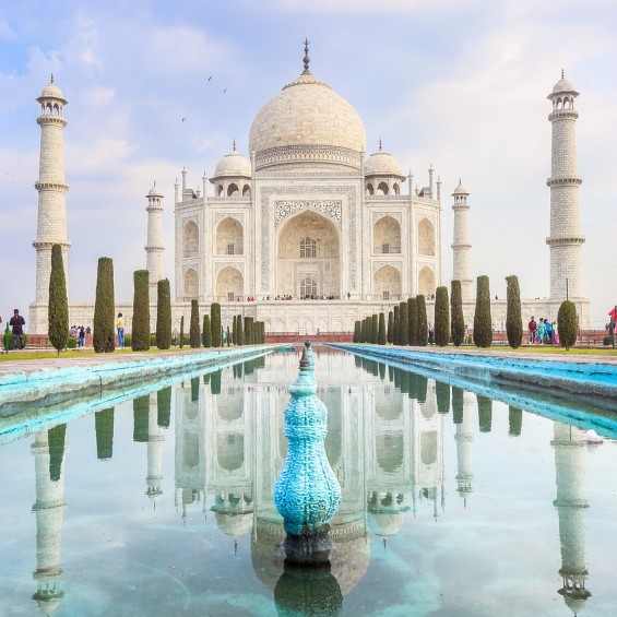 Il Taj Mahal è un maestoso mausoleo, costruito tra il 1632 e il 1653 per volere dell'imperatore Shah Jahan, il monumento è stato progettato come mausoleo per la sua amata moglie Mumtaz Mahal. La struttura si distingue per la sua elegante cupola centrale, i minareti simmetrici e le intricate decorazioni in marmo bianco scolpito, che riflettono un perfetto equilibrio tra arte islamica, persiana e indiana. Circondato da splendidi giardini formali e fontane, il Taj Mahal è simbolo di amore eterno e un'icona riconosciuta e fa parte del patrimonio dell'umanità UNESCO.