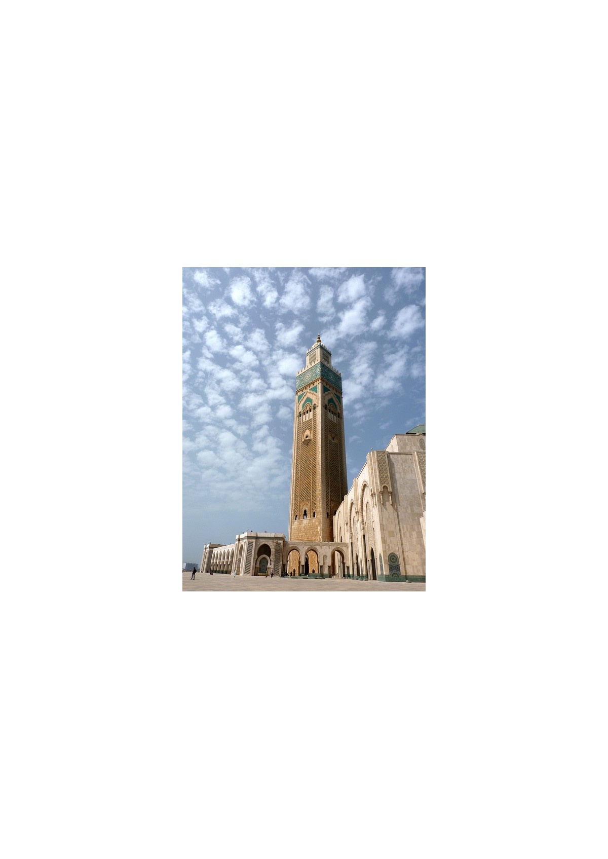 Prima colazione. In mattinata trasferimento a Casablanca. Arrivo e Pranzo incluso. Il pomeriggio è dedicato al tour della città, la più cosmopolita ed aperta del paese: visita dell'esterno del Palazzo Reale, il quartiere Habous, la piazza Mohammed V e l’esterno della moschea dedicata ad Hassan II. Casablanca vanta un’architettura meravigliosa: si possono ammirare vivaci fregi e stupendi mosaici ad ornamento di appartamenti e palazzi di uffici. La città si espanse sotto l’occhio benevolo del generale francese Lyautey, il quale perseguì un programma volto all’ampliamento della città come porto principale e centro economico del paese, intraprendendo un massiccio programma edilizio di ampi viali, parchi pubblici, fontane ed imponenti edifici civili in stile moresco. Cena e pernottamento in hotel.